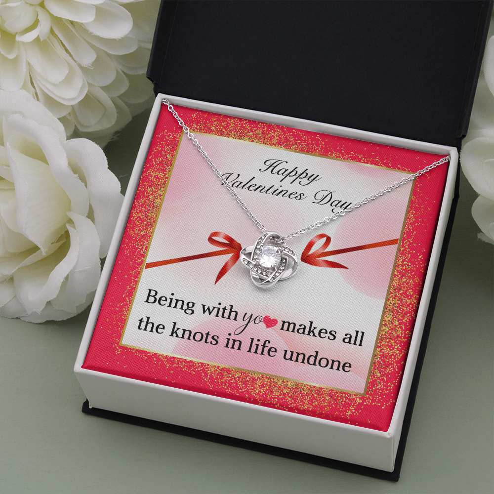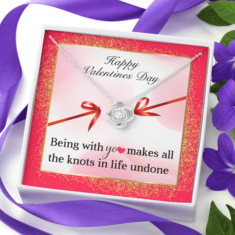 Happy Valentines Day, 14K White Love Knot Necklace