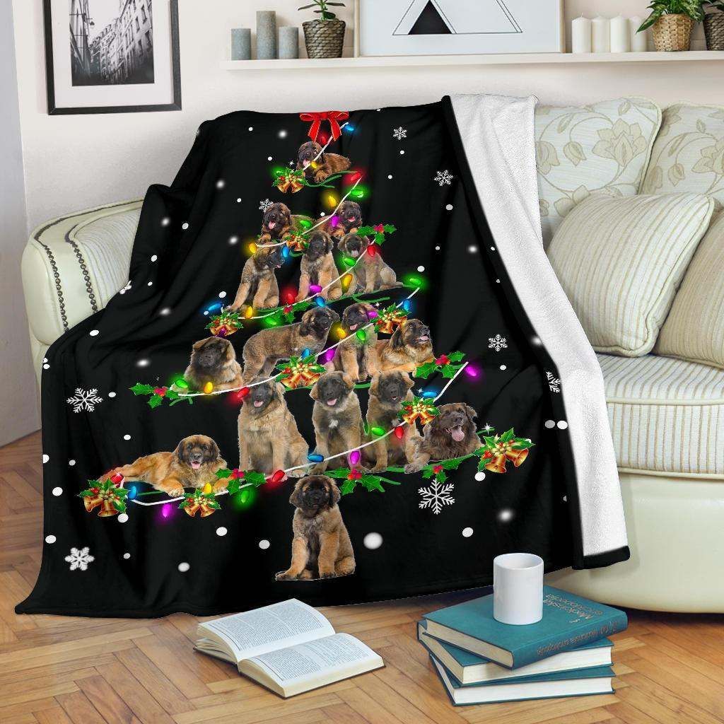 Leonberger Christmas Tree Fleece Blanket Sherpa Blanket