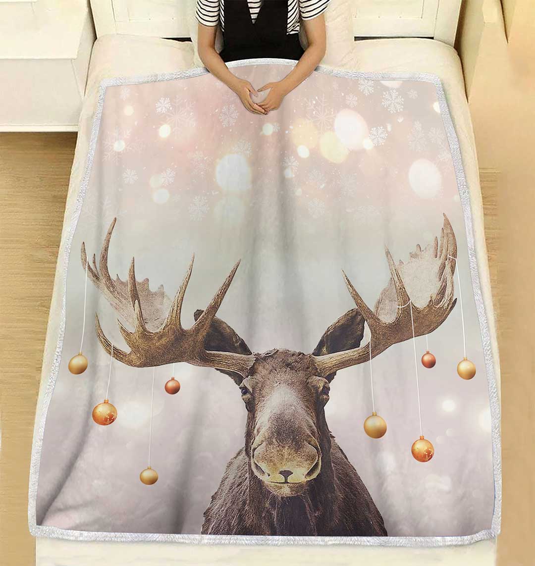 Moose Christmas Fleece Blanket Sherpa Blanket