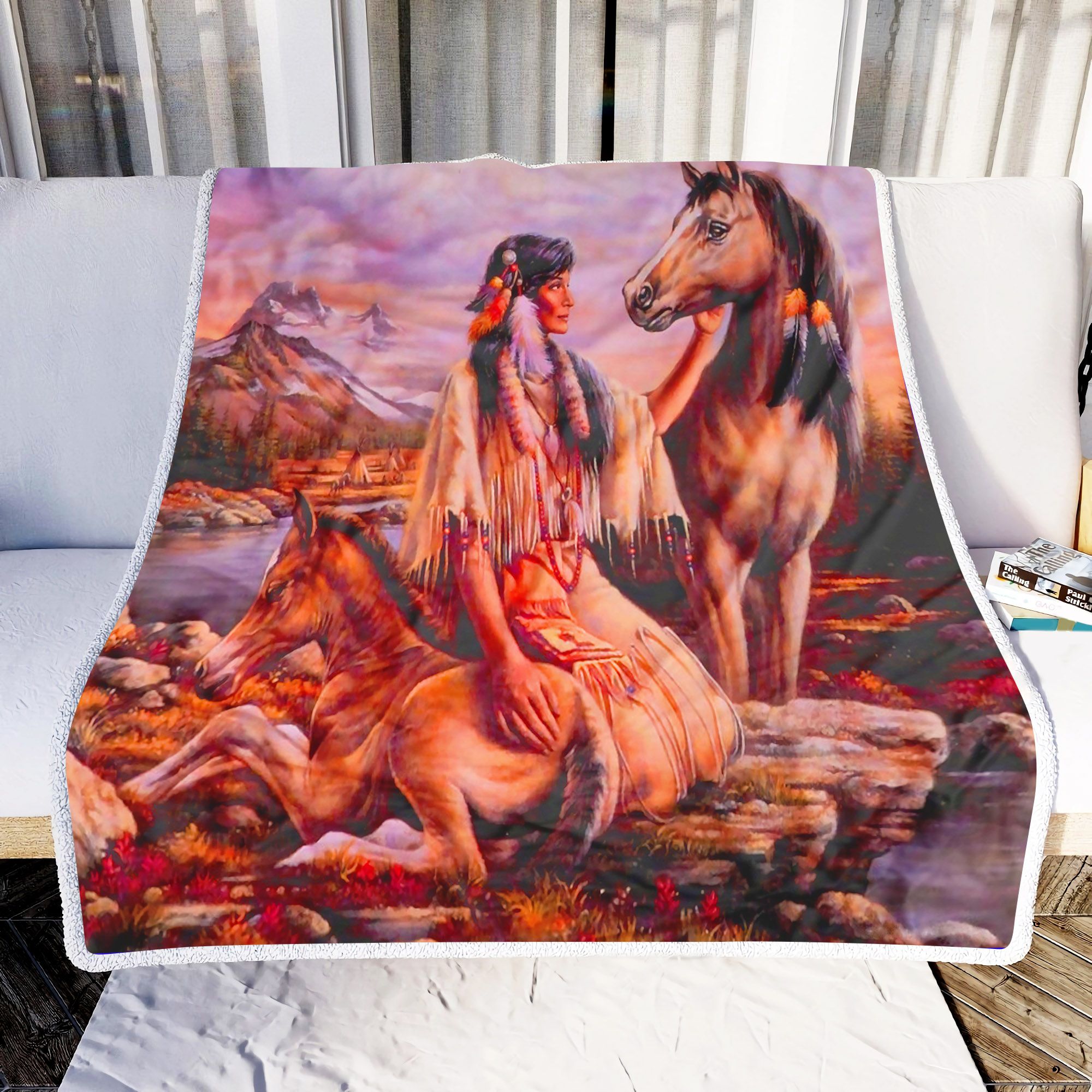 Native America Girl And Her Horse Fleece Blanket Sherpa Blanket