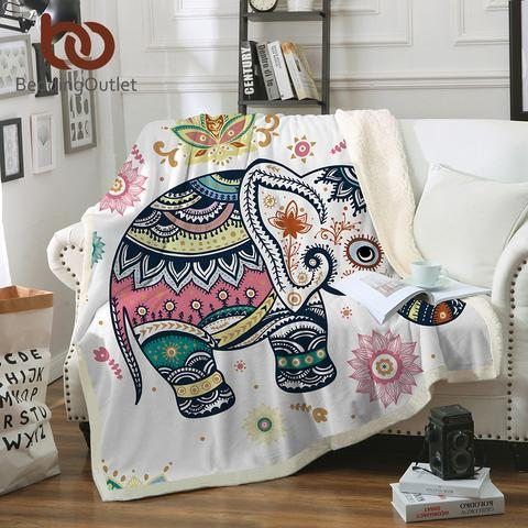 Rainbow Elephant Fleece Blanket Sherpa Blanket
